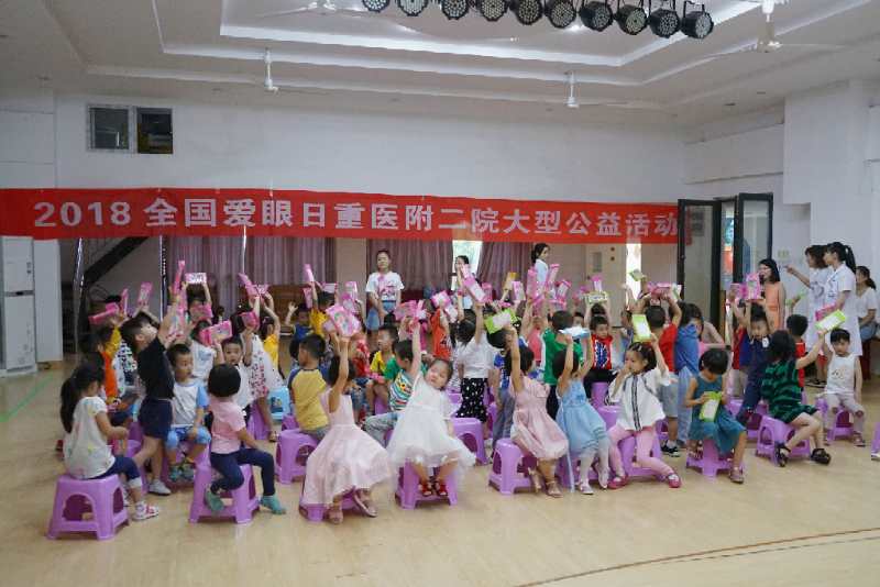 围绕2018年 “爱眼日”的主题:科学防控近视,关注孩子眼健康,重庆市防盲治盲技术指导中心、重医附二院眼科制定了系列爱眼日活动,并在周希瑗主任带领,王茜副教授的筹划和眼科医务人员的共同努力下圆满完成。爱眼日系列活动覆盖南岸、渝中、渝北三个区,以义诊、科教讲座、走进幼儿园及小学的形式进行。重医附二院眼科20余名医护技人员及10余名研究生参加活动,义诊人数达数千人。