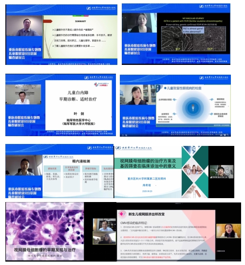为进一步提高重庆市小儿眼病及眼底疾病专业学科水平,加强近视防控合作,2020年6月20日,由重庆市医学会眼科分会防盲学组、重庆市眼科联盟、重庆市近视防控基地主办,重庆医科大学附属第二医院承办的“重庆市眼底疾病专题暨儿童眼健康、RB基因筛查研讨会”在线上交流平台召开。本次会议特别邀请到10位国内知名专家带来精彩的专题讲座,还邀请到3位资深医师带来病例分享。线上参会人数达1000余人。