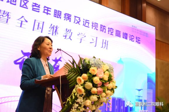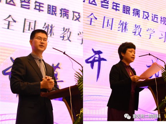 (重医附二院眼科主任马华峰教授主持开幕式,大会主席周希瑗教授致辞)