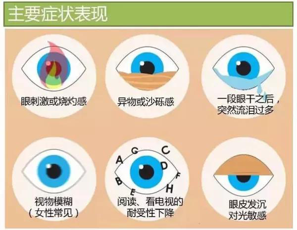 干眼症通俗来讲就是泪水的质或量的异常以及动力学异常,导致泪膜稳定性下降并产生眼部不适。常见症状包括眼睛干涩、易疲倦、眼痒、有异物感、痛灼热感、迎风流泪、畏光等等。
