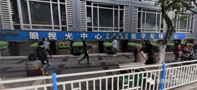 重医附二院眼科中心交通导航:渝中院区外科楼出门向左转,下左侧楼梯即到,可在此咨询屈光不正矫正手术相关事宜及配镜。