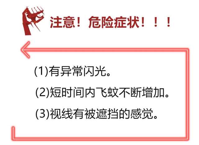 ☞病理性飞蚊症由视网膜血管破裂出血或视网膜裂孔形成等疾病,应引起重视。