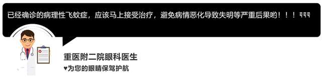 已经确诊的病理性飞蚊症,应该马上接受治疗,避免病情恶化导致失明等严重后果哟!!!