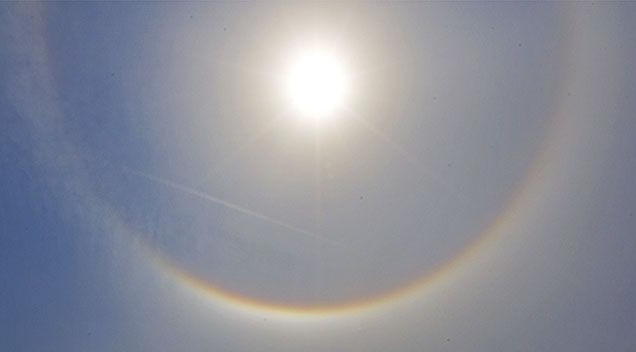 ③看灯光有彩虹或光晕现象,尤其夜间更为明显;