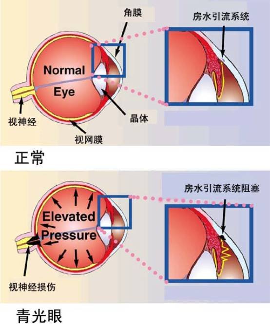 青光眼,通俗来讲就是房水循环障碍导致眼内压升高,高眼压对视神经形成压迫从而引起视野缺损、视神经凹陷甚至萎缩,是最常见的不可逆致盲性眼病。青光眼根据其发病机制可分为原发性、继发性和先天性,根据其病程可以分为急性和慢性,根据其房角是否开放可分为开角型和闭角型,也有部分病人呈现正常眼压青光眼。
