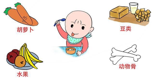 多吃维生素A、B与锌、钙的食物,如蛋类、鱼类、奶类、胡萝卜、菠菜、黄豆、海带、紫菜和猪骨、牛骨等。