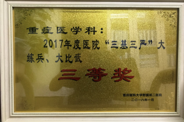 重庆医科大学附属第二医院重症医学科(中心ICU)于2006年12月由急诊重症监护病房(EICU,成立于2003年2月)及外科重症监护病房(SICU,成立于1999年6月)合并而成。2019年,经换届选举成立第40党支部(ICU党支部),共有21名党员、3名预备党员、1名入党积极分子。目前共设病床47张(渝中院区16张,江南院区31张)。渝中院区共有医师25人,其中副主任医师3人,主治医师8人、住院医师14人,博士6人、硕士17人、学士1人;护士总人数83名,全科护士本科学历占84.3%,是重庆市护理学会ICU专科护士培训基地,重庆市老年学和老年医学学会鼻肠管置管培训中心,我院重症医学科是集医、教、研为一体的重症医学中心,担负着全院、重庆市及西南地区重症患者的救治工作。