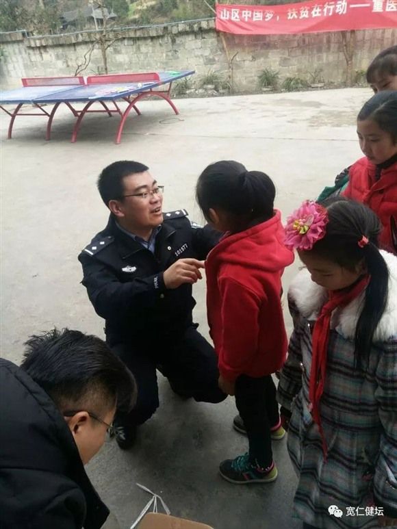 小庄民警给孩子整理衣服