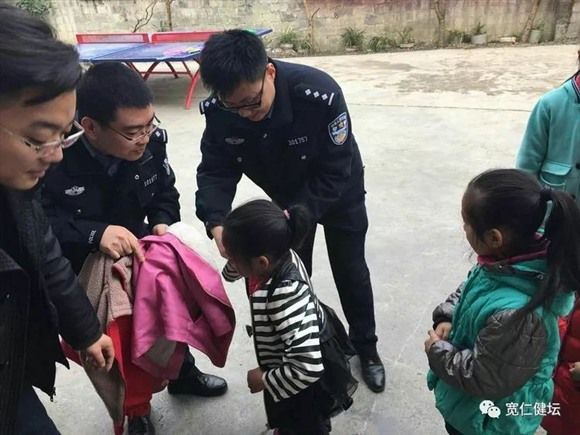 两位民警给孩子穿衣服