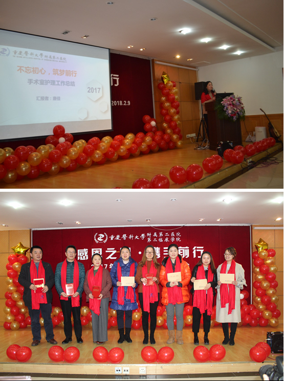 接下来,由唐佳护士长以“不忘初心,筑梦前行”为主题对2017年护理工作进行总结,分别从科室重点工作概况、以患者为中心的工作、以护士为中心的工作以及2018年重点工作四个方面进行汇报,2017年我科护理人员在完成业务工作同时,“医院感染、教育培训、循证科研”三头并进,并取得了丰硕的成果,尤其是在持续护理质量改进方面,以品管圈为工具,有效提高手术室护理质量。另外,6S管理等工具的运用,不断规范我科各项管理工作,建立标准,再造流程,实现了科学管理,提升管理品质。
