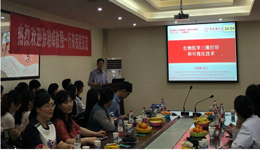 徐晓嵘教授及刘鹏博士的精彩讲座激发了与会人员的极大兴趣及热烈讨论,老师和同学们积极地和徐晓嵘教授一行展开了关于生物三维打印及手术导航的临床的需求及应用等进行了学术探讨,会场气氛热烈,座无虚席。最后,在全场热烈的掌声中结束了本次的学术讲座。