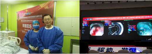 我院梅浙川副院长和消化内科何松主任受邀分别担任5月18-20日在有“英雄城”之称的江西南昌召开的“2018全国食管胃静脉曲张及其伴发疾病诊治研讨会暨第六届江西省消化道肿瘤内镜诊治进展论坛”的主持人和手术演示专家,何松主任熟练地完成了内镜下食管静脉曲张内镜下治疗的手术演示,展示出了我院消化内科在食管胃静脉曲张内镜下规范化治疗方面精湛的技术,获得一致好评,肯定了我院消化内科在食管胃静脉曲张内镜下治疗领域的地位。