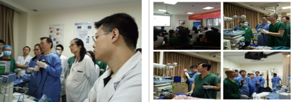 首先我院消化内科何松主任带领其团队与三峡中心医院消化内科邓天伟主任和消化内镜中心于双主任相互合作,共同交流,我院宁波副教授带领郭晓东护师操作指导三峡中心医院李亮医生并共同完成3例ERCP手术,三峡中心医院于双主任、罗冬医生在与我院邓磊主治医师及滕冬梅护师相互指导配合下完成了2例ESD手术,何松主任、高建教授、张浩副教授和冉伟护师共同完成了4例食管胃静脉曲张内镜下治疗手术,在现场手术过程中充分交流,总结分享经验,精湛的手术演示和热烈的交流指导完美融合。