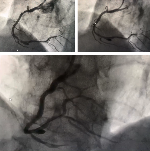 经过细致的准备,2018年5月28日,李兴升主任在神经外科陈维福教授和放射科杨伟技师的协助下,为患者成功实施了冠状动脉瘤介入封堵术,李主任首先处理了患者右冠状动脉狭窄,通过球囊扩张后植入支架,然后在陈维福教授帮助下成功将弹簧圈释放进入冠状动脉瘤体内,造影显示右冠状动脉远端狭窄解除,冠状动脉瘤体成功封堵,介入室响起了热烈的掌声,这掌声不仅是对我科成功完成重庆地区首例冠状动脉瘤介入封堵术的鼓励,更是对神经外科及放射科支持的感激,还饱含着对手术成功后患者转为为安的喜悦之情!