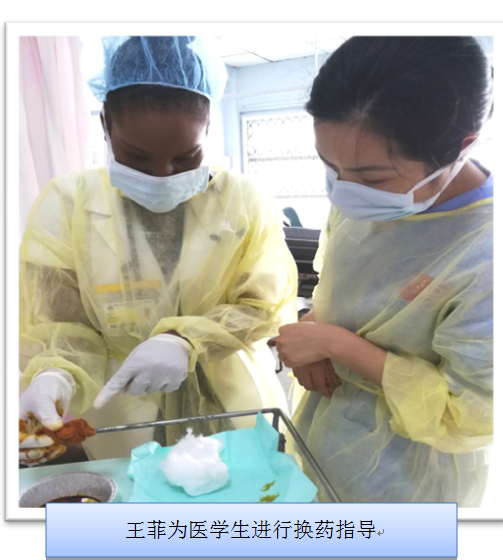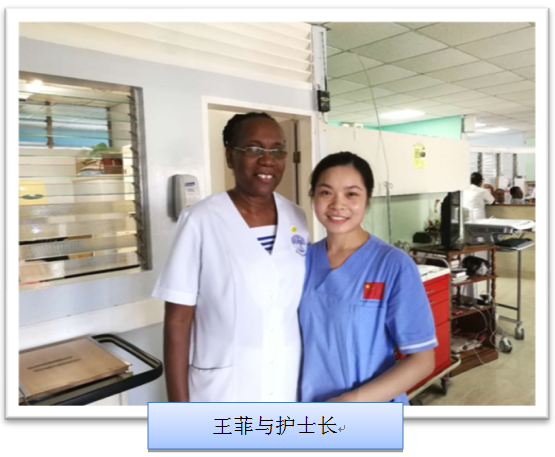 在巴巴多斯伊丽莎白女王医院工作的过程中,王菲同志将国内“全心、全人、全程”的“三全护理”精神,体现在临床病人照护中;同时重视“传、帮、教”工作的开展,通过临床教学、演示、讲解等方法展示了国内护理学科先进的技术和经验,让他们对中国 “三全护理”和护理教育培训有了全新的认识,,以至于他们说:You are so good. You are no developing country, you are developed country.