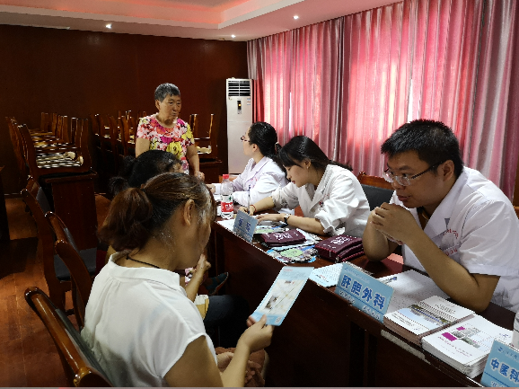 烈日当空,酷暑难挡。为进一步增强社区百姓健康意识,让老百姓了解我院一院两区的运行模式,树立大型公益性医院的良好形象,2018年7月23日上午,院团委组织了口腔科、妇产科、眼科、内分泌科、皮肤科、老年病科、肝胆外科、中医科、胃肠外科、感染病科、消化科、急救部、血液内科、康复科等科室共18名青年业务骨干来到南岸区海棠溪街道文峰新街社区开展“宽仁江南情 健康巴渝行”健康科普暨义诊活动。