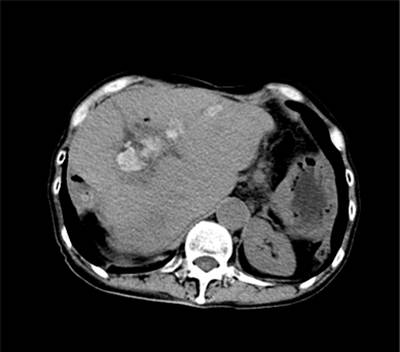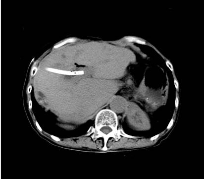 第一次经皮经肝胆道镜碎石取石(PTCSL)术后CT(术后一月)
