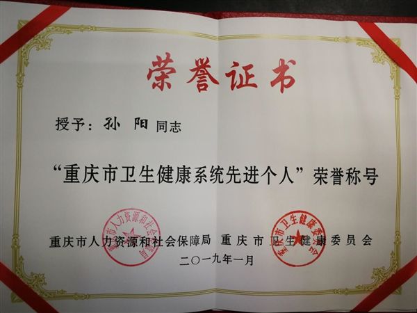 近日,市人力社保局、市卫生健康委开展重庆市卫生健康系统先进集体和先进个人评选表彰工作,我院高度重视,积极组织开展评选推荐和材料上报工作。根据《重庆市人力资源和社会保障局 重庆市卫生健康委员会关于表彰重庆市卫生健康系统先进集体和先进个人的决定》(渝人社【2019】8号)文件,我院感染病科荣获“重庆市卫生健康系统先进集体”,超声科孙阳医生、手术室李冬雪副护士长荣获“重庆市卫生健康系统先进个人”。1月22日上午,李冬雪副护士长作为先进个人代表,参加了2019年全市卫生健康工作会议并现场接受表彰。