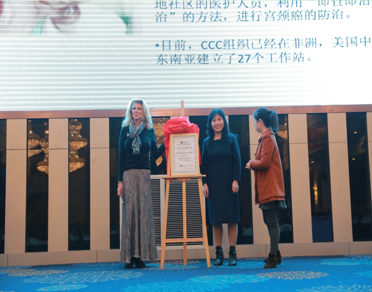 在全球范围内,每年因宫颈癌死亡人数约30万,新发病例48万,其中83%的新发病例以及85%的死亡病例发生在发展中国家。宫颈癌主要由HPV病毒感染所致,绝大多数病例可以通过筛查和对癌前病变及时规范的干预进行预防。我院妇产科在宫颈癌的防治方面进行了长期深入的研究,取得了令人瞩目的成绩。在开展相关研究的基础上,积极寻求多方面的合作与交流,在西南片区率先开展了宫颈病变冷冻疗法,取得了良好效果,并得到了国际宫颈疾病防治组织(CCC)的认可。在此次大会上,来自美国好医友国际医疗中心的CCC创始人Patricia Gordon教授就宫颈疾病即查即治冷冻在全球范围内应用情况的进行了精彩的专题讲座。Patricia Gordon教授肯定我院在宫颈病变“即查即治”防治方面做出的成果,特授予我院“宫颈疾病即查即治式冷冻疗法培训基地”。会后,在常淑芳教授的陪同下,Patricia Gordon教授参观了鱼咀乡镇卫生院并对当地的医护人员进行了冷冻治疗的现场培训,现场气氛热烈,学习热情高涨,大家一致认为这种即查即治式宫颈疾病冷冻疗法对经济欠发达地区宫颈癌防治具有非常重要意义。