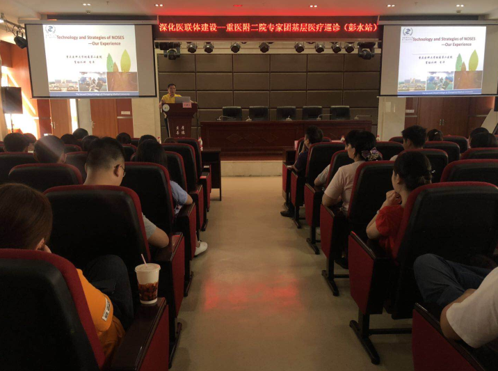 下午三点半,李洋和唐博医生分别带来了《结直肠癌NOSES手术技术及策略》、《下肢深静脉血栓的预防及处理》主题讲座,分享了我院胃肠肛肠外科和血管外科的科室现状及技术优势,以及新技术疗法的应用前景,有助于扩展基层医疗工作人员的思维意识,从而进一步提升基层学科建设和专科发展。