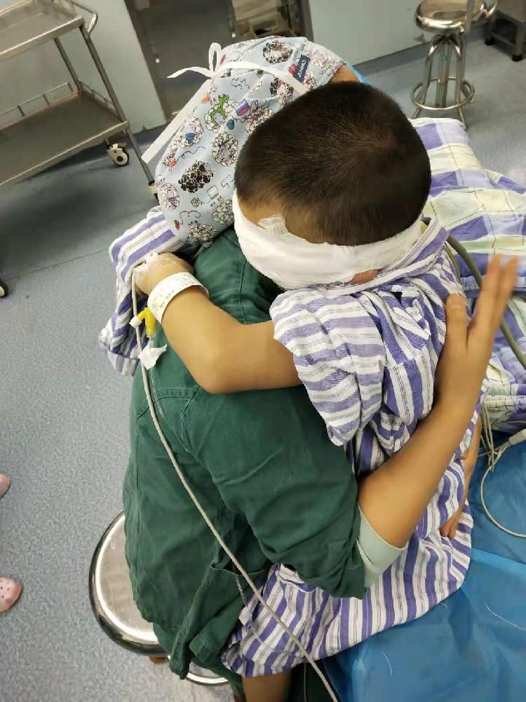 一声亲切的“孩子”,一个温暖的拥抱,让手术后醒来的小患者安静下来。8月8日下午,4岁的小男孩松松在重医大附二院进行了双眼内斜视的手术治疗。手术后的松松,处于陌生的环境,双眼被纱布蒙住,没有亲人在旁,一直害怕不安地叫着“妈妈”。为了安抚小男孩的情绪,守护在一旁的手术室护士刘小婧一直抚摸着他的小手,等待他自主呼吸恢复、脱氧后,又轻轻地将孩子揽入怀中,“孩子别怕,我在呢!”