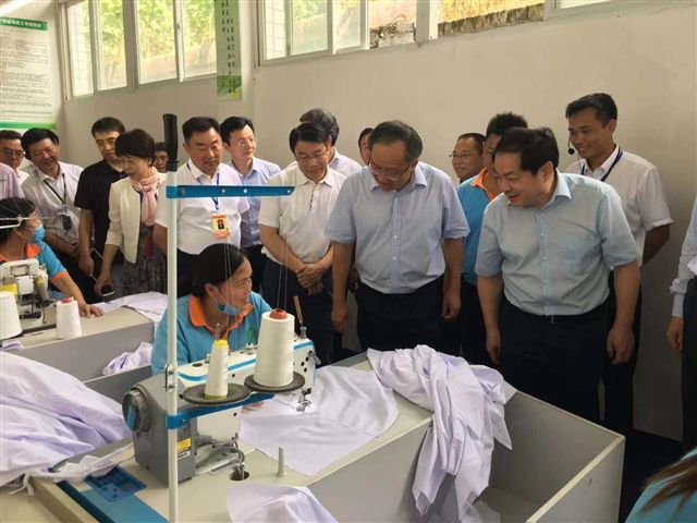 8月19日上午,国务院扶贫办党组成员、副主任夏更生,重庆市委副书记任学锋,重庆市政府副市长李明清等与会嘉宾,分两批对黔江区金溪镇的扶贫工作进行了实地调研。参观团先是到黔江中塘乡参观了产业发展,随后在黔江区金溪镇,市卫生扶贫集团驻乡工作队驻地,了解驻村干部们的生活、工作场所,翻阅驻村工作日记,查看了“金溪农场”展示厅,观看电商平台购物演示。在金溪被服厂参观时,刘昶同志向大家详细介绍了“金溪护工、金溪被服、”扶贫产业情况,这是做实脱贫民生实事、培育富民扶贫产业创新措施,开启了全镇脱贫攻坚新的篇章。8月19日下午,全国驻村帮扶工作培训班在黔江区如期开班,来自全国28个省、自治区、直辖市和新疆生产建设兵团扶贫办的相关负责人及部分驻村干部参加培训。