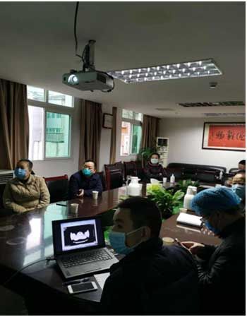 专家组成员对境外发热人群进行会诊指导 院方供图