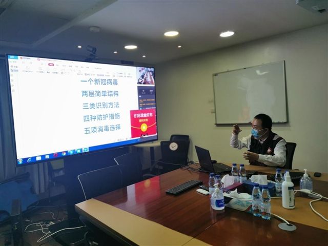 当地时间5月15日-16日,江德鹏和张传来随专家组来到中国援阿医疗队、中资企业,开展抗疫培训和防控指导,送去防护用品和生活物资,关心同胞身心健康。此外,还分别同在阿尔及利亚以及在埃及、突尼斯、利比亚的中资企业、侨民、留学生和汉语教师等通过视频会议方式进行防疫、外伤急救等知识培训和在线答疑。