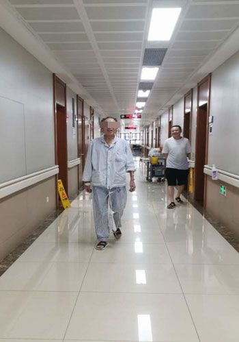 术后恢复期,陈爷爷在走廊活动。院方供图