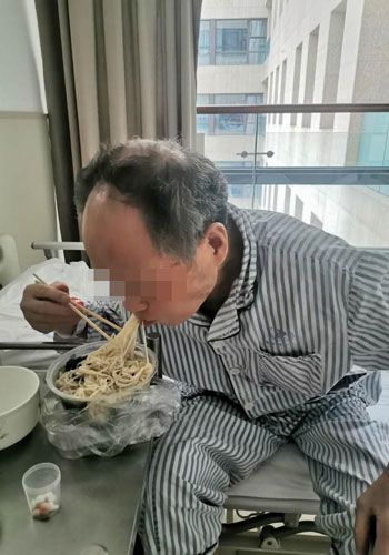 陈爷爷开心地吃面。院方供图