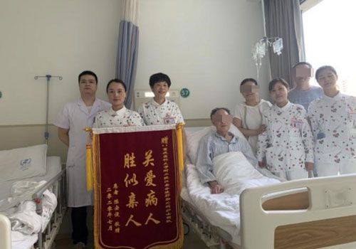 陈爷爷在病床上与我们合影时,嘴角微微上扬,笑得像个孩子,这在我们医院患者史上留下一抹灿烂的微笑。