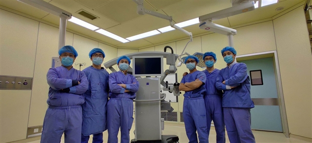 2020年4月,神经外科引进全球最先进手术显微镜Zeiss PENTERO 900,该显微镜除了可以进行常规显微手术、血管内荧光手术(用于脑血管病手术)之外,其最大的优点则是用于肿瘤荧光手术(例如脑胶质瘤手术),其中荧光素钠引导技术可以更加直观的显示肿瘤的边界,且操作简便,安全稳定,缩短手术时间,降低手术风险,提高了肿瘤的全切率,为后期综合研究提供基础,为改善患者预后、延长生存时间提供了强有力的保障。