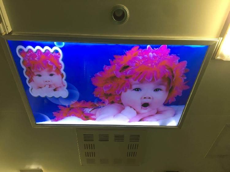 (重医附二院妇产科生殖医学中心取卵室里天花板上的宝宝照)