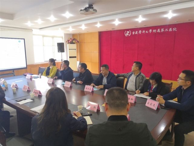 首先,党委书记王大刚致欢迎词,对远道而来的访客表示欢迎。在双方领导简要介绍参会人员后,丰都县人民医院院长蔡云刚就丰都县人民医院的基本情况、历史沿革、医院文化、发展定位、学科及人才建设、科研教学、未来发展规划等情况进行了全面地介绍,并对我院长期以来在教学、医疗技术等方面的帮助和支持真诚地表示感谢。蔡院长谈到,丰都县人民医院希望加强与重医附二院之间的联系与合作,强化在科研教学、学科建设、人才培养等方面的深度合作和交流,并希望重医附二院在丰都县人民医院二甲复评、三甲创建的工作中给予大力的支持。