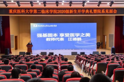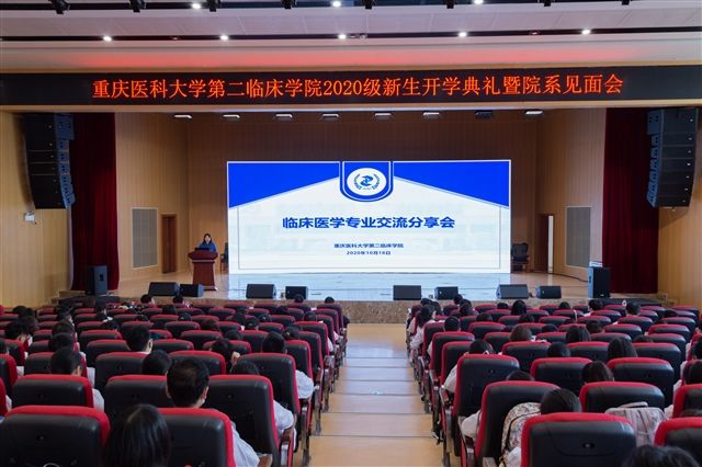 2020年10月18日上午10:30,重庆医科大学第二临床学院2020级新生开学典礼及专业分享交流会在附二院江南院区宽仁会议中心隆重举行。党委书记王大刚、纪检委书记杨力、副院长胡鹏出席会议,我院各教研室主任、各临床科室代表、兼职班主任代表、辅导员老师以及2020级全体新生参加了会议。