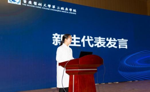 接着,2020级新生代表邓紫欣于台上讲出了2020级新生的心声——生于非典,考于新冠,这是时代对他们最好的磨砺,相信正如邓紫欣同学所言“努力成为有理想、有温度、有本领、有担当的时代新人,勇往直前,为祖国医药卫生事业的发展和人类身心健康而奋斗终生。”