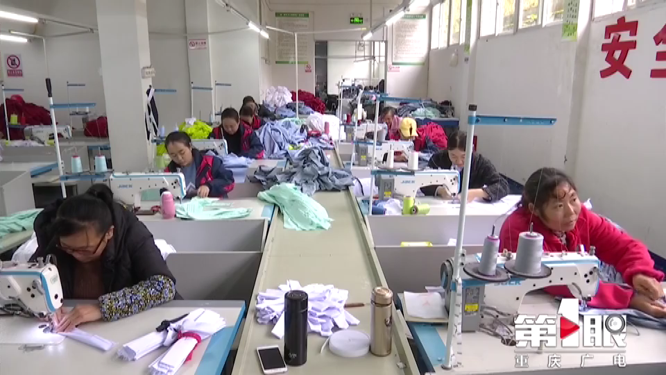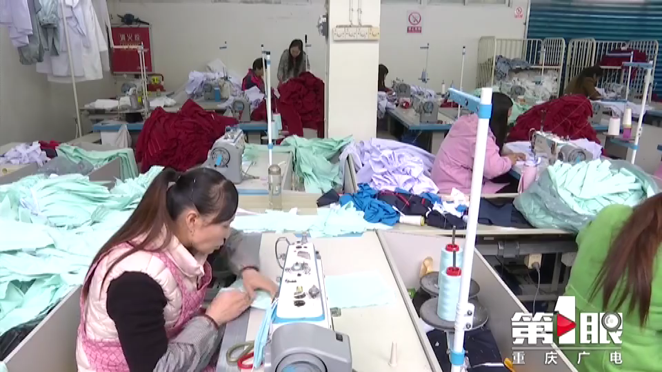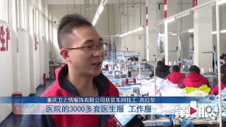 重庆卫之情服饰有限公司扶贫车间技工高红华告诉第1眼记者,公司正在生产的是重庆市扶贫集团下面医院的3000多套医生服、工作服,每天都有七、八十名工人在加班加点地赶制。