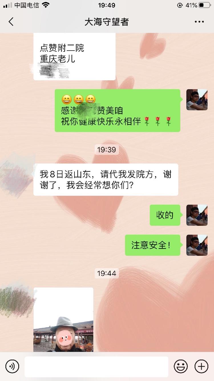 “感恩朱鹏教授、胡自力教授、周世骥副教授、于军医生、盛博医生、何红梅护士长以及所有救治我的医护人员,我现在活的每一天,都是他们给我的。”杨明行说,每年会从山东回到重医附二院复查两次,每次见到熟悉的面孔都格外高兴,听着他们亲切地称呼自己“杨老头”、“老杨”、“杨老师”……更是说不出的激动。但他坚持:“虽然我们医患间早就变成了很好的朋友,可感谢一定不能少。”