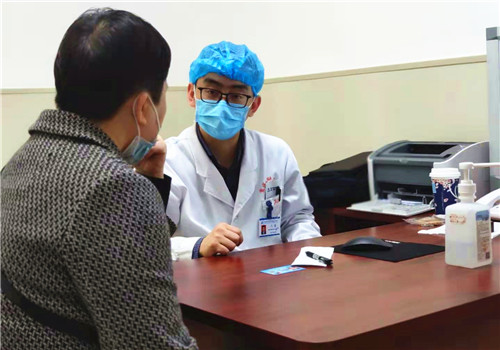 石磊医生和患者家属沟通病情。院方供图