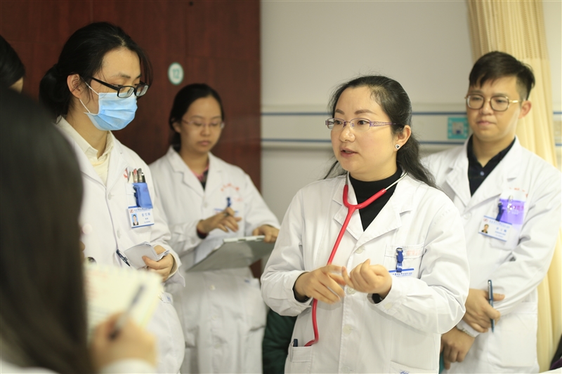 “这在我们风湿免疫科很常见,因为我们的患者很多都是疑难杂症,对我们的专业技能提出了更高要求。”唐琳表示,作为一名党支部书记,她对科室医护人员的专业水平要求很高,多次邀请国内外各专家教授到科室进行理论授课和实践指导,让科室医生专业知识得到及时更新和丰富;多次派选科室优秀医生、护士至北京协和医院风湿免疫科进修深造,拓宽专业知识视野,提升专业技术能力。同时,她还经常性组织开展共话科研发展的讨论,让两个年轻科室组成的支部,以科研工作推进科室发展,不断带领团队积累临床经验,总结临床病例。