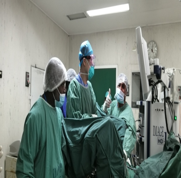 (援巴新医疗队长于圣杰在新冠疫情期间为患者实施结石微创手术)