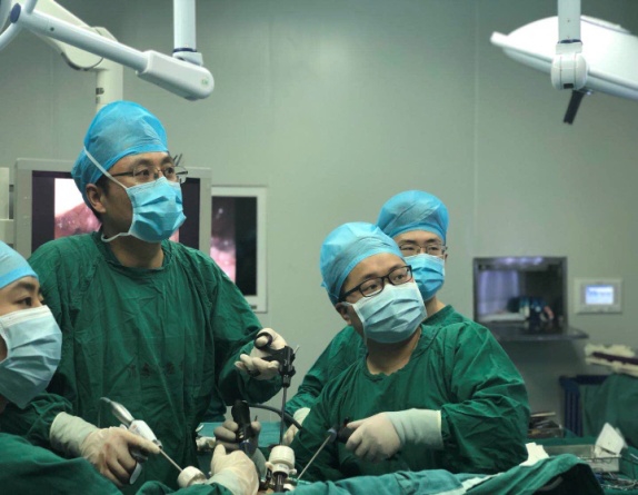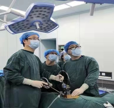 (刘川副主任等为患者实施腹腔镜肾脏手术)