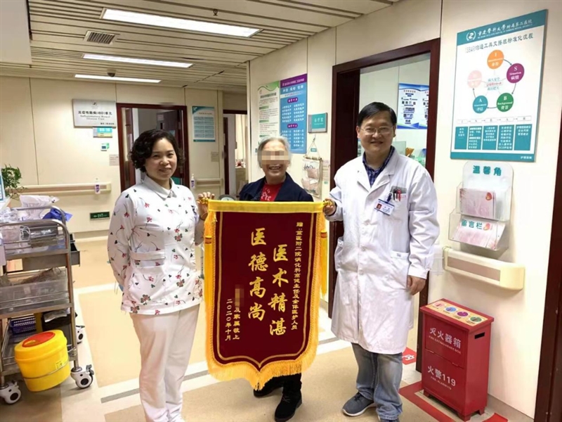 “大年初一,本是阖家团聚的日子,然而你们却牺牲了这一切,奉献给了病人……你们无愧‘白衣天使’的光荣称号!”在一封感谢信里,患者李女士的丈夫由衷的表达了自己对高建教授及其团队的感激之情。原来,患者李女士在大年初一因肝硬化食道胃静脉破裂引起大出血,生命垂危,在这千钧一发的危急时刻,高建教授放弃休息赶往医院,带领当班医生护士全力以赴进行抢救,为患者实施急诊胃镜下止血手术,成功挽救了患者的生命。