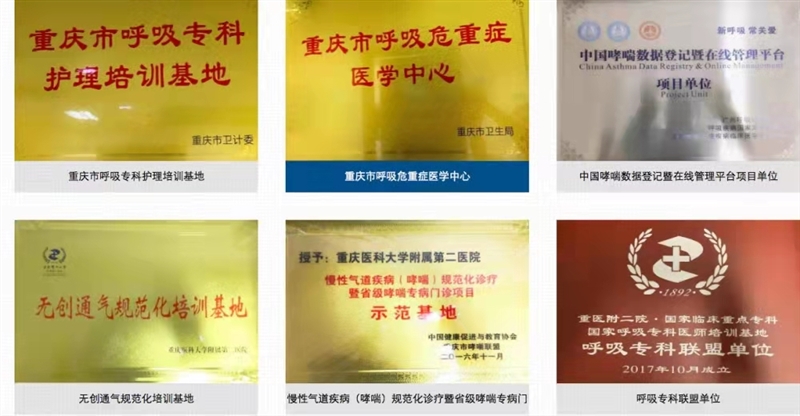 目前,呼吸与危重症医学科是国家临床重点专科、国家呼吸与危重症医学(PCCM)专科医师培训基地、国家临床药品试验基地、国家呼吸区域医疗中心(委省共建)牵头单位、重庆市重点学科、重庆市“呼吸危重症医学研究中心”、中华医学会呼吸分会全国委员单位、重庆市首席专家工作室领衔专家单位、重庆市首批医学领军人才单位、重庆市医学会结核专委会主委单位、重庆市护理学会呼吸专委会主委单位、博士学位授予点、博士后流动站。