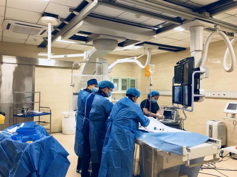 当日正在急救部值班的老年病科医师唐映红请示李兴升主任后一边为张士诚安排完善相关检查,一边马上联系介入手术室准备立即急诊手术。在准备手术的间隙,李兴升主任还与张先生的儿子进行了电话联系,在告知患者紧急情况的同时,也简单介绍了科室的技术实力,目的是为了让远在千里之外的家属能够放心。随后,介入手术正式开始。为了避免张士诚心动过缓加重,出现停跳,和在介入手术过程中出现其他心率问题,李主任给他安了临时的心脏起搏器,顺利做了冠脉造影,结果发现心脏两根主要的大血管都病变严重,冠脉左前降支血管狭窄达99%,右前降支血管狭窄达85%,且重度钙化。