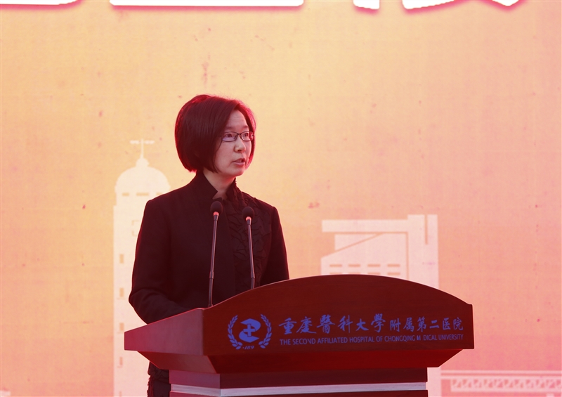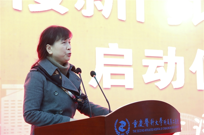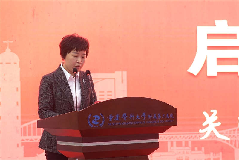 冯跃林代表重庆医科大学讲话,她介绍了近年来学校党建和事业发展取得的突出成绩,对附属第二医院医教研各方面取得的成绩给予充分肯定,要求医院在新发展阶段要以高质量党建引领医院高质量发展,落实党委领导下的院长负责制,进一步提升综合实力和服务水平,解决人民群众健康“急难愁盼”问题。同时指出,学校将大力支持医院发展,希望全院医务人员修医德、行仁术,为推动学校和医院事业高质量发展作出新的更大贡献,以优异成绩迎接党的二十大胜利召开。