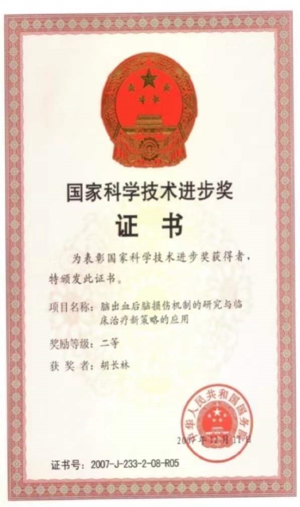 临床、教学、科研,是促进学科发展的“三驾马车”。从建科伊始,科室确立以脑血管疾病和癫痫为研究中心,坚持科研以解决实际问题为出发点,紧密结合临床。在脑血管疾病方面,围绕脑出血的病理生理机制如血肿周围的水肿及缺血、早期血肿的扩大、神经元的损伤与保护等,进行深入研究,形成独具特色的研究方向,多次获得卫生部科技成果、国家科技进步奖等奖项。2007年,胡长林教授因脑出血的研究获得国家科技进步奖二等奖。