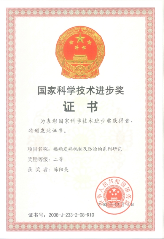 在癫痫方面,不仅取得一定成绩,而且难治性癫痫方面的研究也独具特色。为继续发挥优势,陈阳美教授聚焦于癫痫与神经系统发作性疾病的临床与基础研究,作为主研之一获国家科技进步二等奖(2008年)、教育部科技进步一等奖(2007年)、四川省科技进步一等奖(1995年)、国家级科技进步三等奖(1996年)、重庆市科技进步二等奖等(2007年)、贵州省科技进步三等奖等(2017年)。以第一或通讯作者发表癫痫相关研究论文200余篇,2004年主编《癫痫治疗学》,2016年主编《神经病学疑难病例剖析》(人民卫生出版社),参编癫痫相关专著26部。