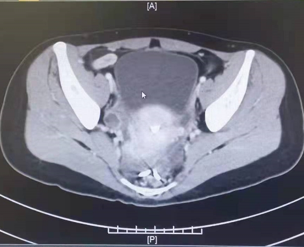 张女士腹部CT图像(可见直肠异物、阑尾肿瘤)