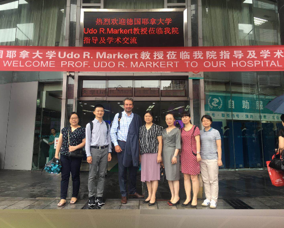 7月3日上午,窗外细雨霏霏,重庆医科大学附属第二医院妇产科生殖中心会议室内的热烈气氛却毫无影响,一场小型的国际学术交流正如火如荼地进行中。Udo R. Markert教授作为国际知名的生殖免疫学家,向我们展示了他所在德国耶拿大学胎盘实验室的独特技术——利用刚分娩的胎盘建立体外母胎循环系统。我院科研处黄慧哲处长、妇产科胡丽娜主任、董晓静副主任、张觇宇副主任及部分生殖中心工作人员均参与了交流。大家对于Udo R. Markert教授团队的研究成果给予高度评价,认为通过该模型可以深入研究母胎屏障的物质转运的生理病理机制。黄处长及胡主任就与Udo R. Markert教授进行长期科研合作并共建联合实验室的规划进行了初步探讨。